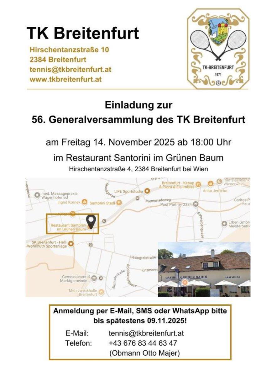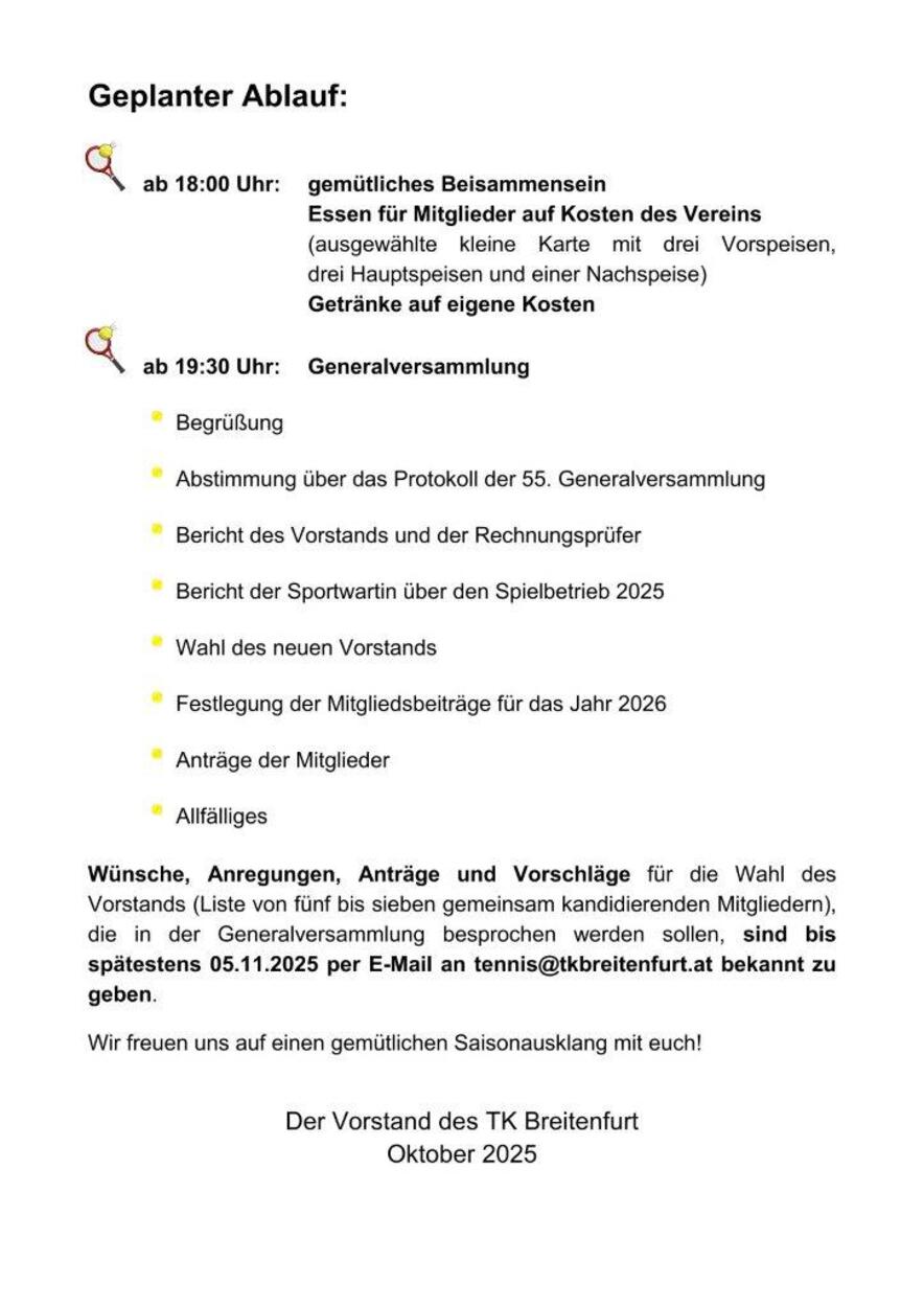 Einladung zur Generalversammlung - Bitte um zahlreiche Anmeldung